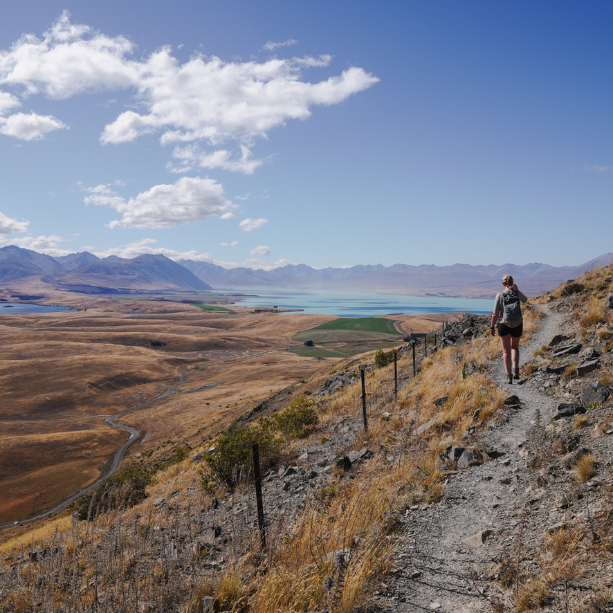 Vanaf de Mount John Summit Circuit Track heb je een prachtig 360 graden uitzicht over de Mackenzie regio en het azuurblauwe Lake Tekapo. Op de top van de berg vind je de Mount John Observatory waar je door een telescoop het universum kunt bewonderen.